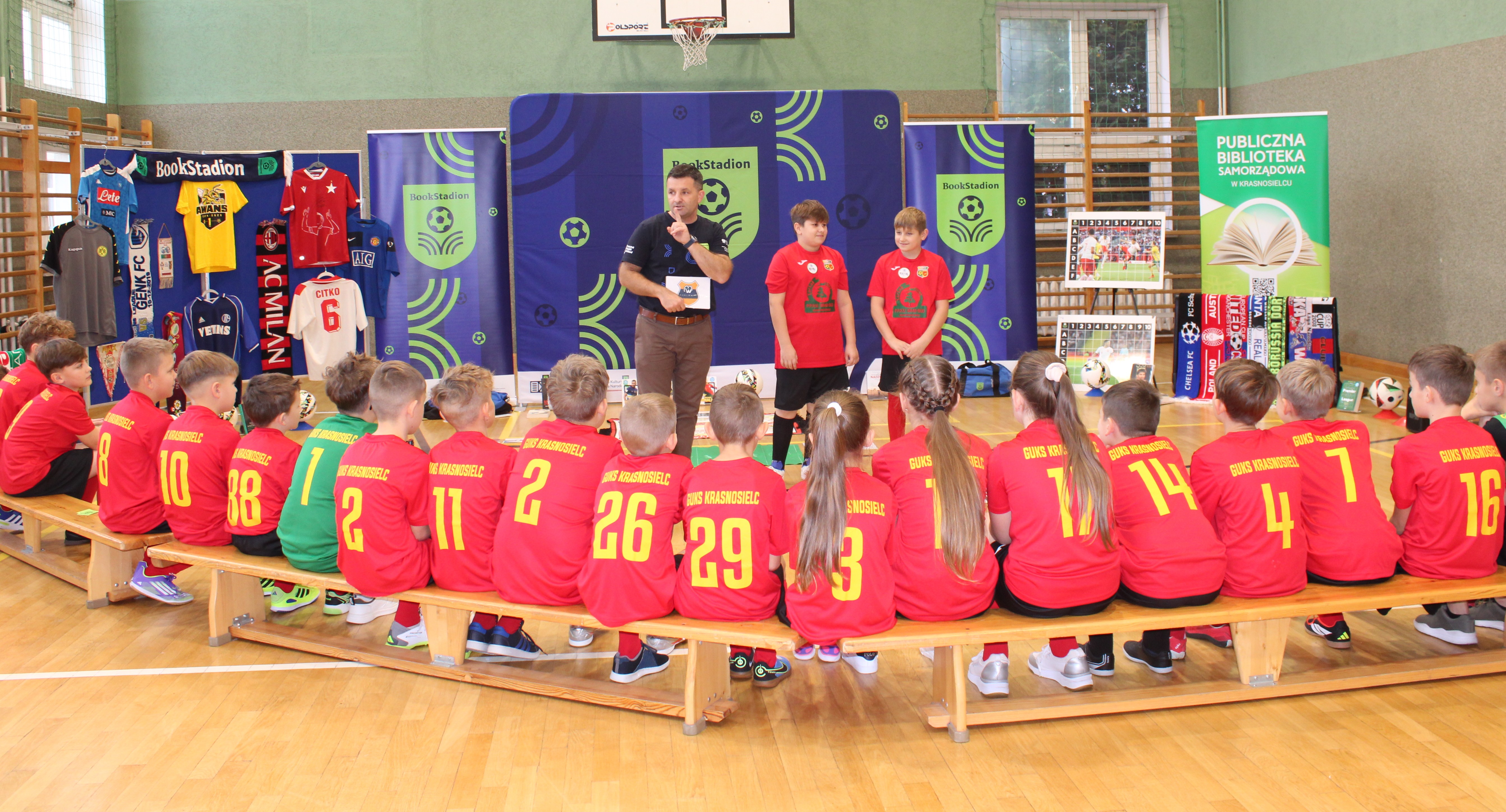 Jest to projekt Instytutu Książki, którego celem jest promocja czytelnictwa wśród dzieci i młodzieży. Do udziału w spotkaniu zaprosiliśmy młodych piłkarzy z naszego Gminnego Uczniowskiego Klubu Sportowego w Krasnosielcu