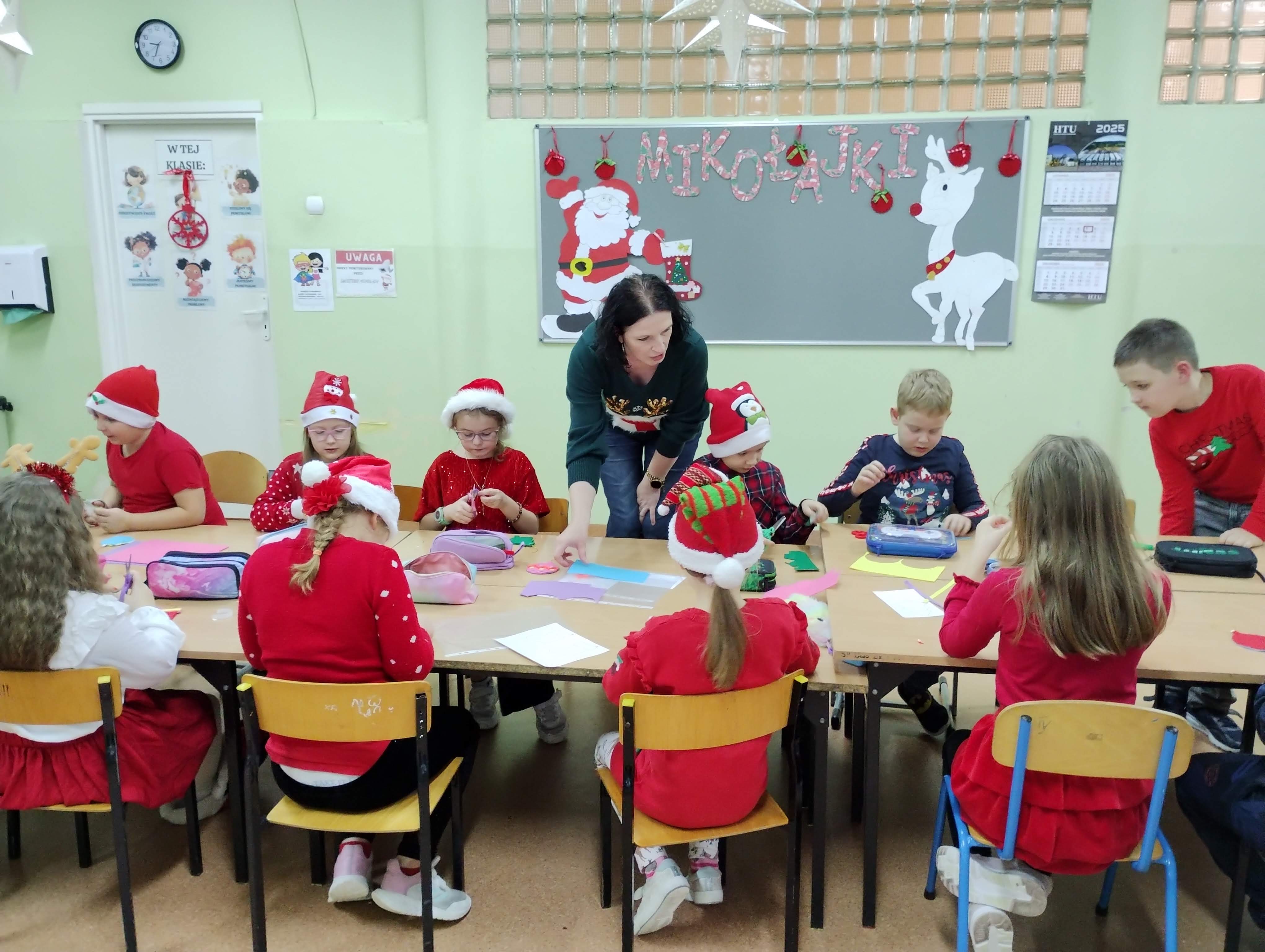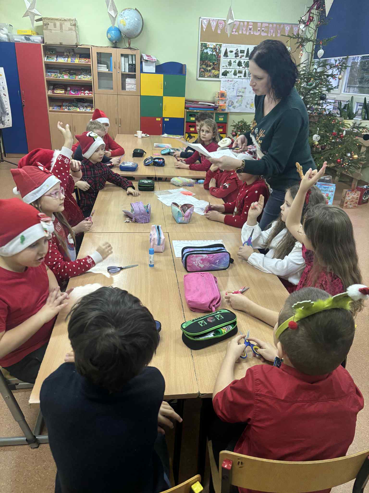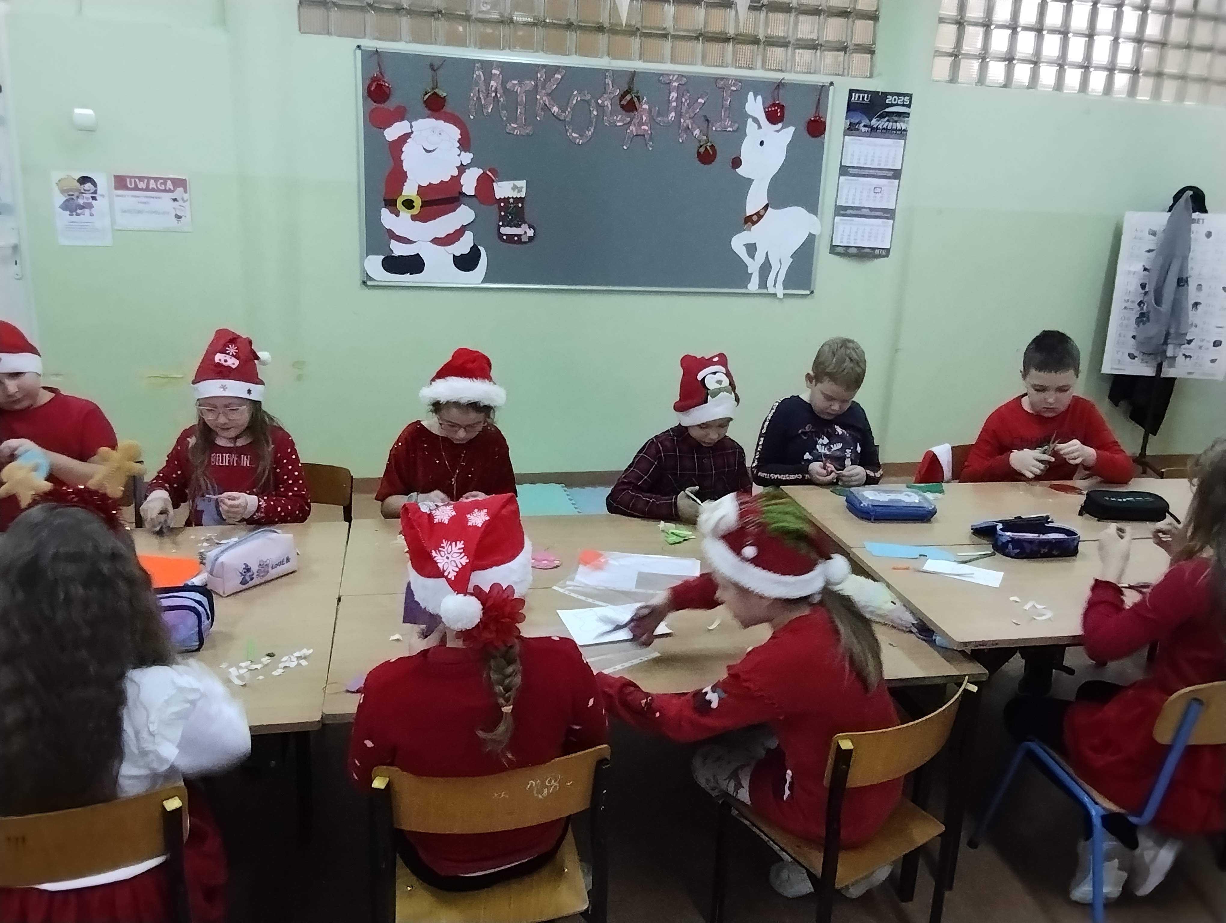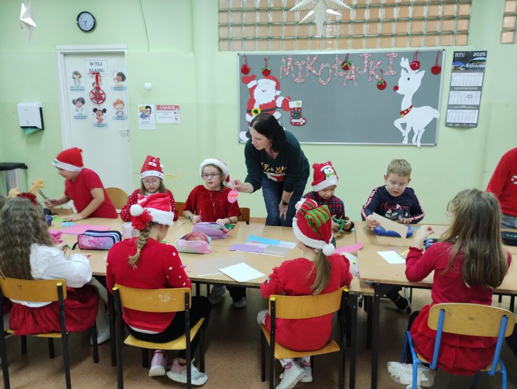 Dzieci podczas warsztatów wykonały piękne bombki z filcu, które zdobić będą choinkę.![]()