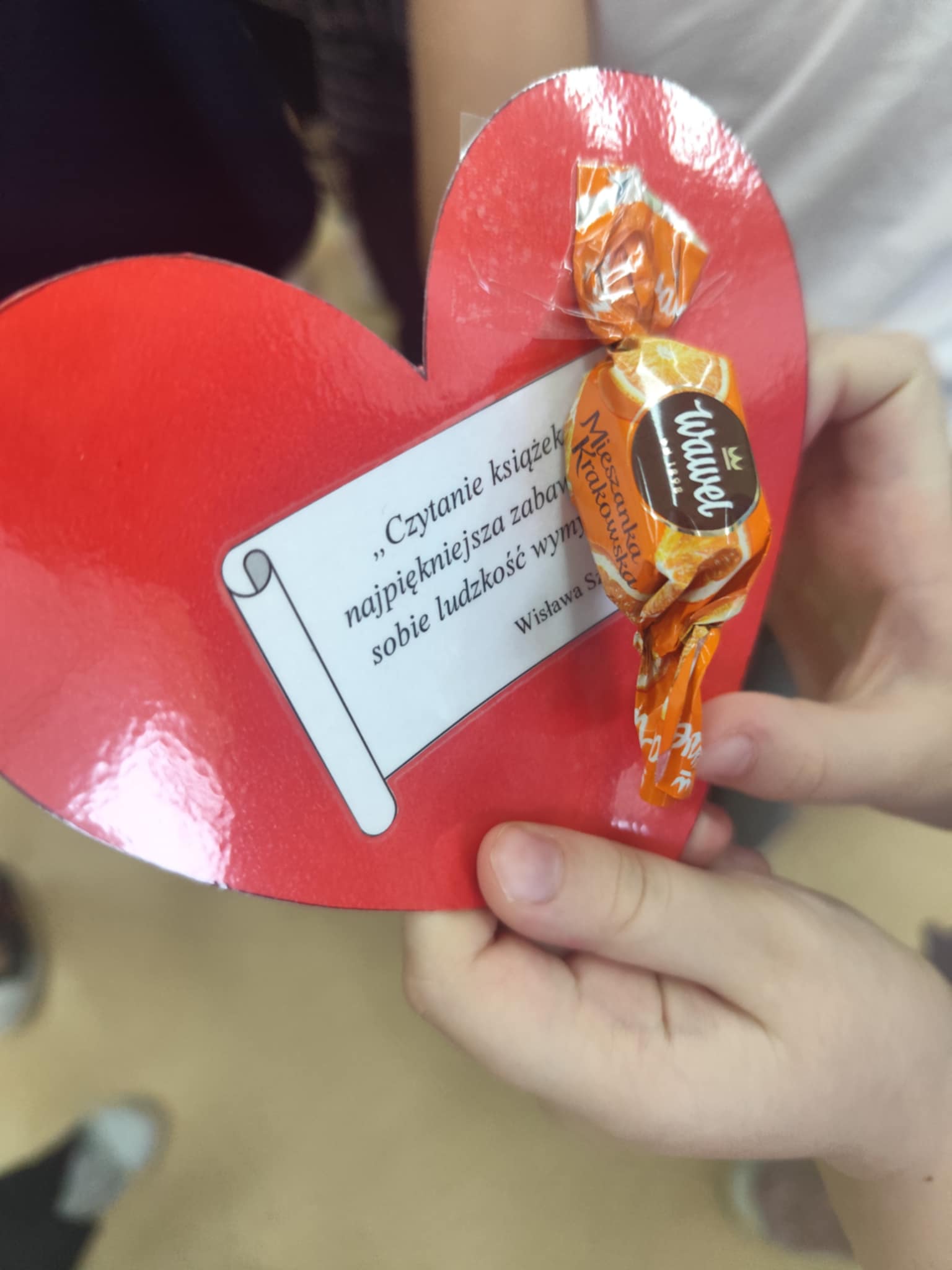 Na koniec dzieci otrzymały kartki walentynkowe z cytatami o miłości do książek i czytania, z małym co nieco. ![]()