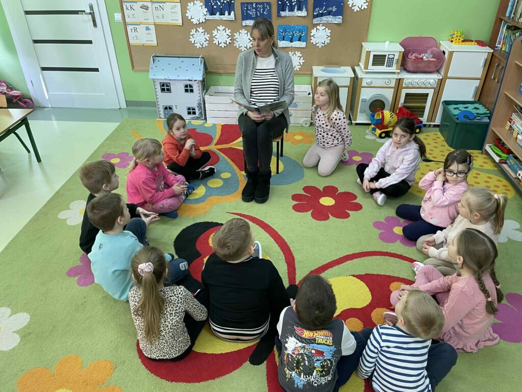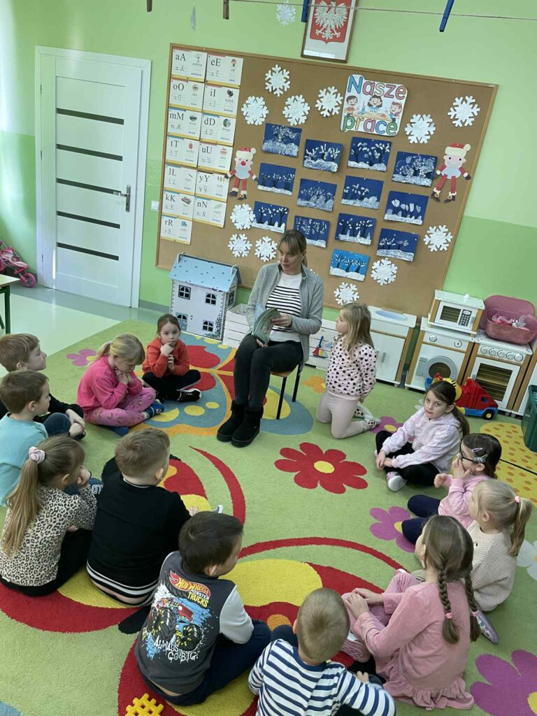 Bajka przypomniała nam, że zima może być wesoła i pełna radości, jeśli bawimy się bezpiecznie i dbamy o siebie oraz innych. Następnie przedszkolaki opowiadały o swoich ulubionych zimowych zabawach. ![]()